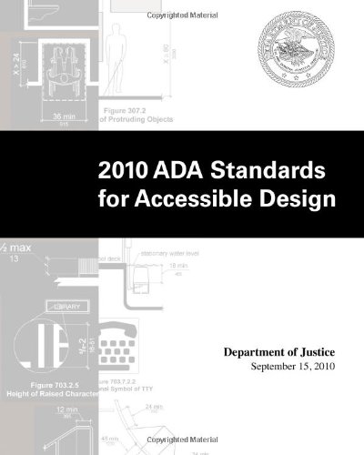The Department of Justice has assembled this official version of the 2010 ADA Standards for Accessible Design (2010 Standards) to bring together the information in one easy-to-access location. It provides the scoping and technical requirements for new construction and alterations resulting from the adoption of revised 2010 Standards in the final rules for Title II (28 CFR part 35) and Title III (28 CFR part 36).
